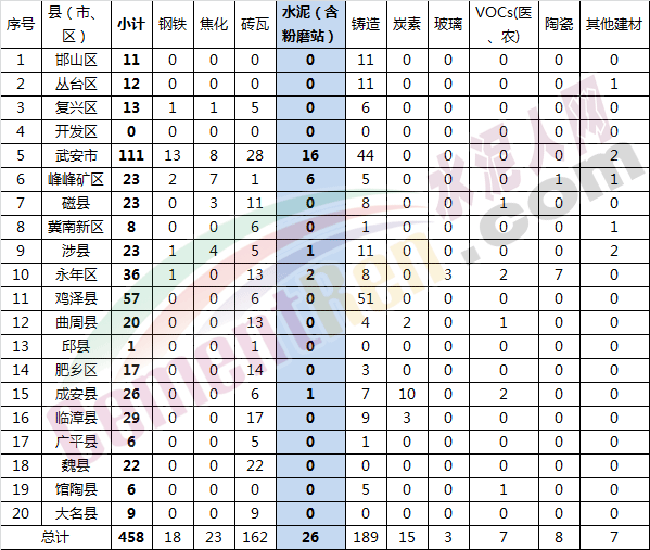注:各縣(市、區(qū))進(jìn)一步核實(shí)本區(qū)域10個(gè)重點(diǎn)行業(yè)錯(cuò)峰生產(chǎn)企業(yè)底數(shù),未上報(bào)按漏報(bào)計(jì),采暖季一律停產(chǎn)。