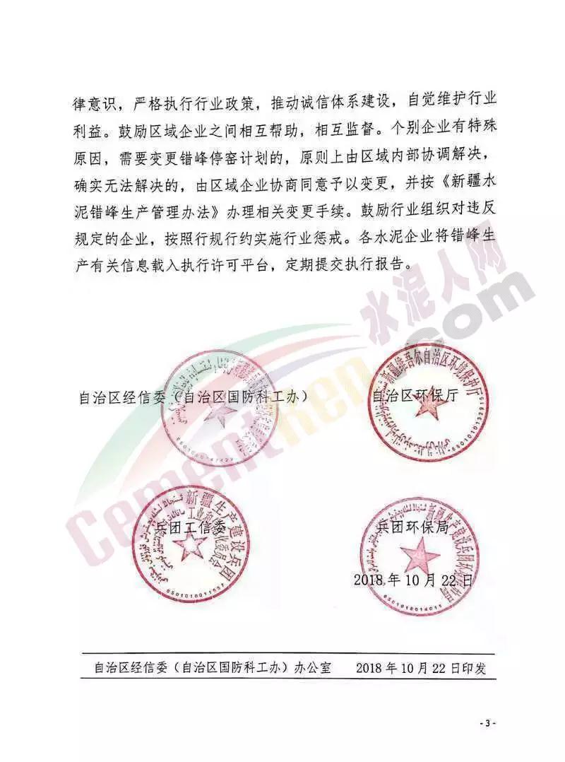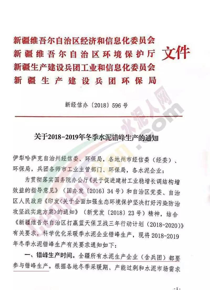 全疆所有水泥生產(chǎn)企業(yè)(含兵團)都要參與錯峰生產(chǎn)。