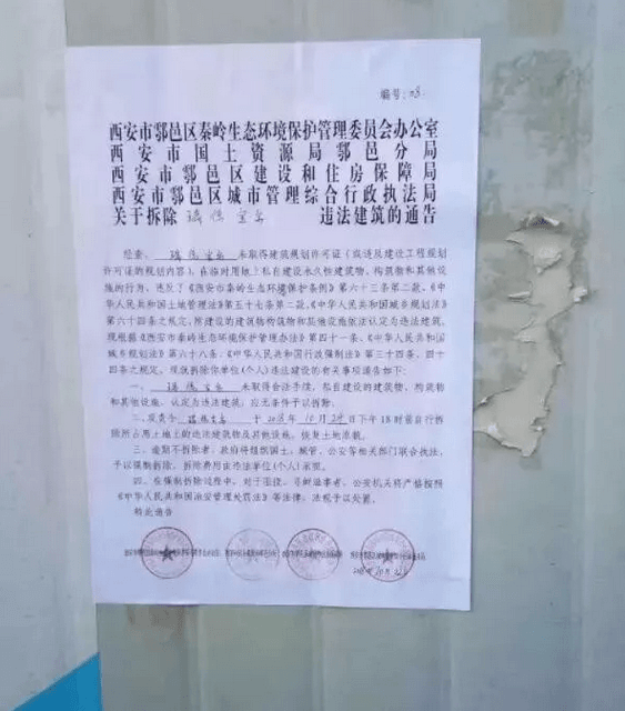 前天(10月24日),秦嶺山谷內(nèi)的陜西瑞德寶爾礦山因“未取得建筑規(guī)劃許可證”、“私自建設(shè)違法建筑物”當(dāng)?shù)貓?zhí)法部門限其前天18點(diǎn)前自行拆除所占土地上的違法建筑及其他設(shè)施,恢復(fù)土地原貌。