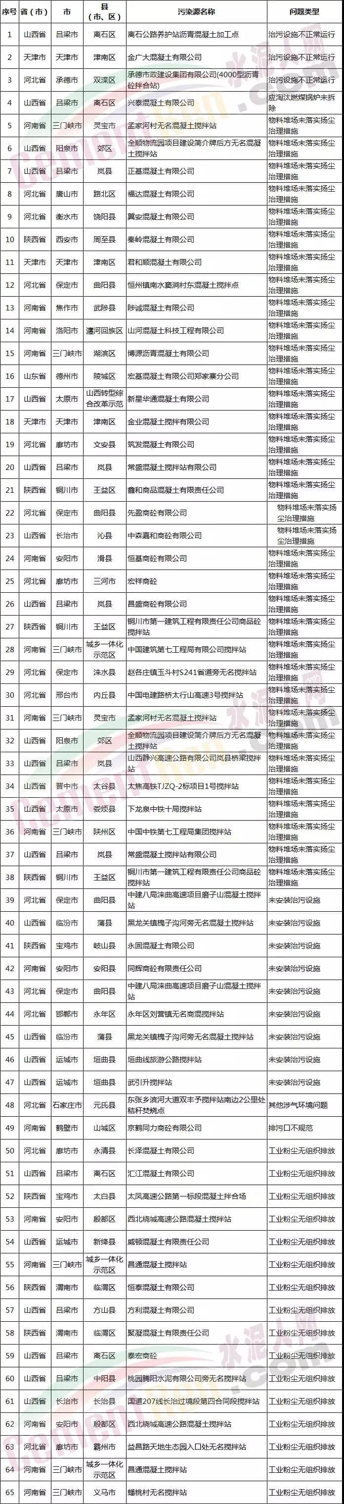 水泥人網(wǎng)作為行業(yè)最大的新媒體平臺,將部分生態(tài)環(huán)境部公布的相關(guān)企業(yè)名單,及問題類型整理如下,以便企業(yè)對照自查,防患于未然: