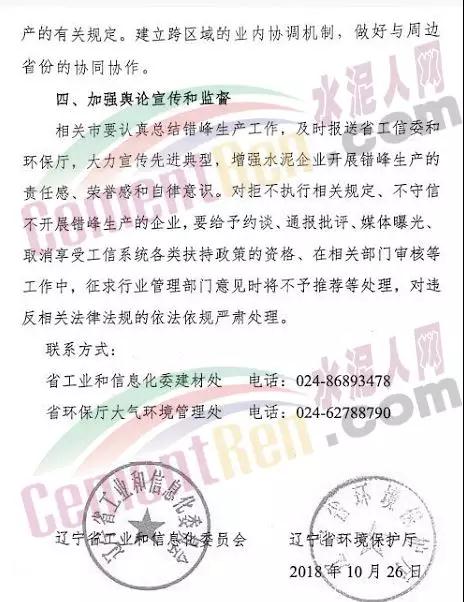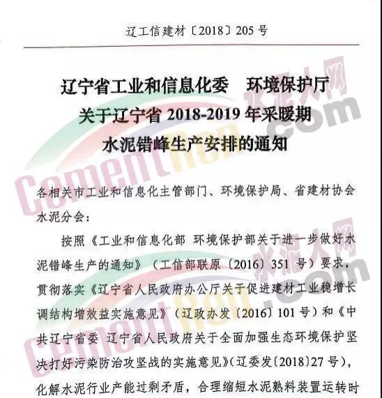 同日,遼寧省工信委和環(huán)保廳也聯(lián)合發(fā)布了《關(guān)于遼寧省2018-2019年采暖期水泥錯峰生產(chǎn)安排的通知》。根據(jù)該文件相關(guān)規(guī)定,自2018年11月1日至2019年3月31日,遼寧省內(nèi)水泥熟料生產(chǎn)線原則上都應(yīng)進行錯峰生產(chǎn),其中大連地區(qū)停窯錯峰時間為2018年11月5日至2019年4月5日,對承擔(dān)居民供暖、協(xié)同處置城市生活垃圾及有毒有害廢棄物任務(wù)的生產(chǎn)線原則上可以不進行錯峰生產(chǎn),但要適當(dāng)降低水泥生產(chǎn)負荷。