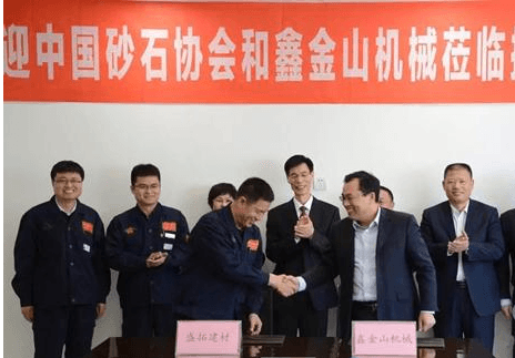 中國(guó)砂石協(xié)會(huì)會(huì)長(zhǎng)胡幼奕,保定市發(fā)改局局長(zhǎng)安同生,棗莊鑫金山智能機(jī)械股份有限公司董事長(zhǎng)孫中巖、總經(jīng)理裴尚,源盛城發(fā)集團(tuán)董事長(zhǎng)劉翠卿、總經(jīng)理高磊,源盛城發(fā)集團(tuán)保定盛拓建材加工有限公司總經(jīng)理魏增軍、副總經(jīng)理張雷、許亞兵、工程部經(jīng)理靳衛(wèi)東等參加簽約儀式。