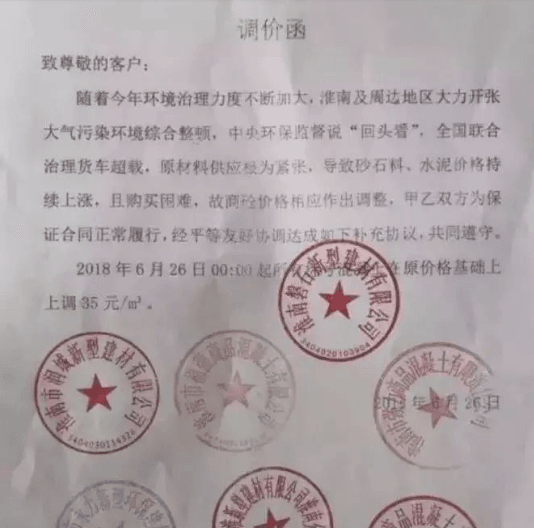 淮南,安徽省下轄地級市,位于安徽省中北部,地處長江三角洲腹地,淮河之濱,素有“中州咽喉,江南屏障”之稱,是沿淮城市群的重要節(jié)點,合肥都市圈核心城市。即使有這樣的優(yōu)越地理條件,在中央環(huán)保監(jiān)督下,全國聯(lián)合治理貨車超載中,當(dāng)?shù)厣笆?、水泥價格依然持續(xù)上漲,且購買困難,當(dāng)?shù)仨牌鬄榱吮苊鈵盒愿偁帲WC混凝土質(zhì)量,所有混凝土在原價格基礎(chǔ)上上調(diào)35元/方。