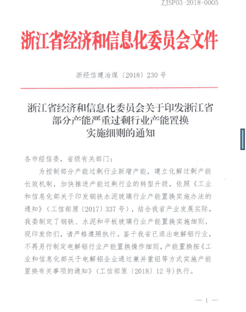 浙江省水泥玻璃行業(yè)產(chǎn)能置換實施細(xì)則