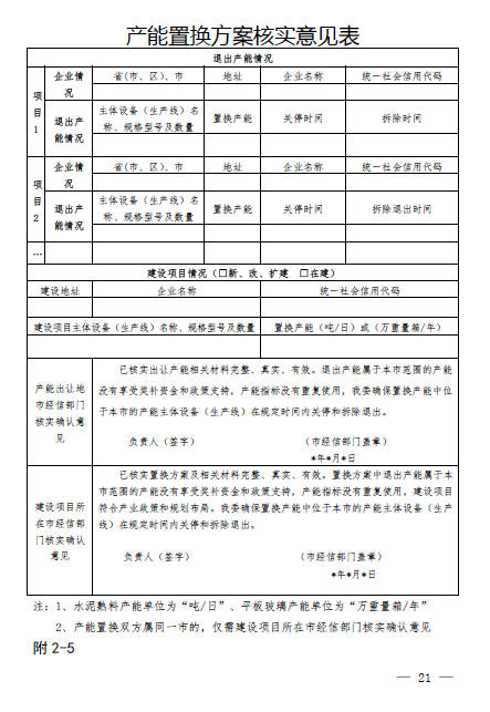 第三條 水泥熟料、平板玻璃建設(shè)項目實施減量置換,其中建設(shè)水泥熟料項目退出產(chǎn)能與建設(shè)產(chǎn)能的置換比例不低于 1.5:1,平板玻璃建設(shè)項目置換比例不低于 1.25:1。前款中不需制定產(chǎn)能置換方案建設(shè)項目可不實行減量置換。