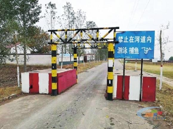 11月7日,記者驅(qū)車來到蘭考黃河大堤上,找到了舉報(bào)人所說的限高桿。不過限高桿已經(jīng)被焊死,焊接處的痕跡顯示,焊死的時(shí)間并不長(zhǎng)。再向北走大約500米的距離,大堤?hào)|側(cè)為蘭考黃河河務(wù)局蔡集控導(dǎo)工程管理班和蘭考縣公安局黃河派出所警務(wù)室的辦公場(chǎng)所。這里還有一處水泥墩和限高桿共同組成的限高設(shè)施,限高又限寬,且限高桿上明確掛有“禁止在河道內(nèi)游泳、捕魚、采砂”的警示牌。那么運(yùn)砂車是怎么走上大堤的呢?