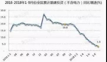 2018年前三季度,全國基礎(chǔ)設(shè)施投資(不含電力)同比增長3.3%,增速較1-8月份回落0.9百分點,低于去年同期16.5個百分點。其中,水利管理業(yè)投資下降4.7%,降幅較1-8 月份擴大1.1個百分點 ;道路運輸業(yè)投資增長8.9%,增速較 1-8 月份回落0.4個百分點;鐵路運輸業(yè)投資下降10.5%,降幅較1-8月份收窄0.1個百分點。