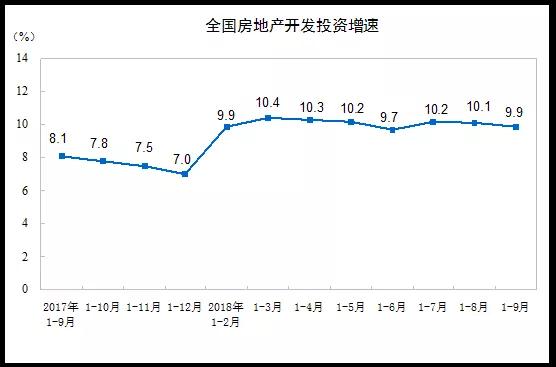 2018年前三季度,全國房地產(chǎn)開發(fā)投資8.87萬億元,同比增長9.9%,增速較1-8月份回落0.2個百分點,高于去年同期1.8個百分點。其中,住宅投資6.28萬億元,同比增長14%,增速較1-8月份下降0.1個百分點。住宅投資占房地產(chǎn)開發(fā)投資的比重為70.8%。