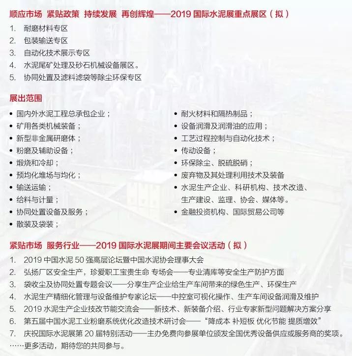 Cementtech(水泥展)作為行業(yè)內(nèi)影響力最大的專業(yè)展,展出面積超過20000平方米,為國際水泥相關(guān)設(shè)備制造商和服務(wù)供應(yīng)商提供客戶開發(fā)、渠道拓展和品牌宣傳維護等專業(yè)服務(wù);憑借十余年的專業(yè)經(jīng)驗,水泥展已成為行業(yè)內(nèi)最具影響力和號召力的服務(wù)貿(mào)易平臺!