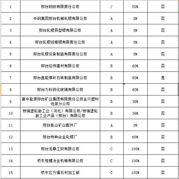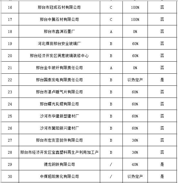 為切實(shí)改善秋冬季環(huán)境空氣質(zhì)量,邢臺(tái)市以民生優(yōu)先、質(zhì)量導(dǎo)向、錯(cuò)峰與應(yīng)急相結(jié)合為原則,制定了《邢臺(tái)市重點(diǎn)行業(yè)秋冬季差異化錯(cuò)峰生產(chǎn)績(jī)效評(píng)價(jià)實(shí)施方案》。該市大氣污染防治工作領(lǐng)導(dǎo)小組辦公室近日組織相關(guān)技術(shù)專家,對(duì)“三區(qū)一縣”依法取得排污許可證、污染物穩(wěn)定達(dá)標(biāo)排放且在線監(jiān)測(cè)數(shù)據(jù)真實(shí)有效、符合現(xiàn)行行業(yè)產(chǎn)業(yè)政策的相關(guān)企業(yè),根據(jù)其污染物排放標(biāo)準(zhǔn)、運(yùn)輸結(jié)構(gòu)合理程度、產(chǎn)品質(zhì)量及檔次等狀況,核定A、B或C績(jī)效評(píng)價(jià)等級(jí)及在采暖季錯(cuò)峰生產(chǎn)比例。