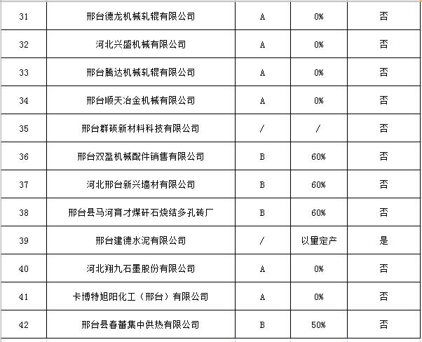 日前,邢臺(tái)市公布“三區(qū)一縣”秋冬季重點(diǎn)行業(yè)差異化錯(cuò)峰生產(chǎn)企業(yè)名單,橋東區(qū)、橋西區(qū)、經(jīng)濟(jì)開發(fā)區(qū)和邢臺(tái)縣的42家鑄造、建材、橡塑等重點(diǎn)行業(yè)企業(yè),要在采暖季實(shí)施差別化錯(cuò)峰生產(chǎn)。
