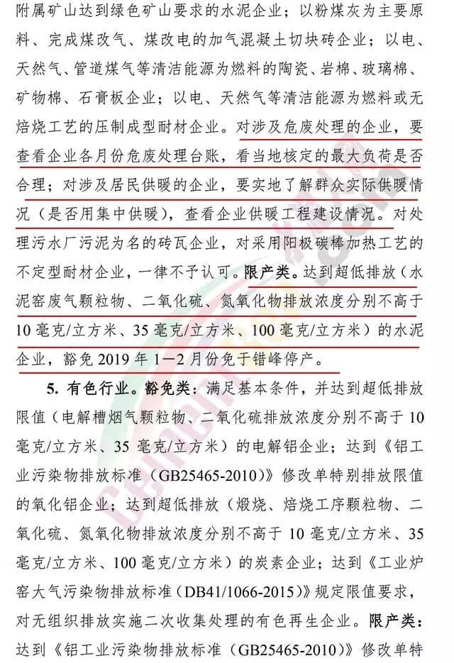 限產(chǎn)類,達到超低排放(水泥窯廢氣顆粒物、二氧化碳、氮氧化物排放濃度分別不高于10毫克/立方米、35毫克/立方米、100毫克/立方米)的水泥企業(yè),豁免2019年1-2月份免于錯峰停產(chǎn)?!斗桨浮啡娜缦拢?br />