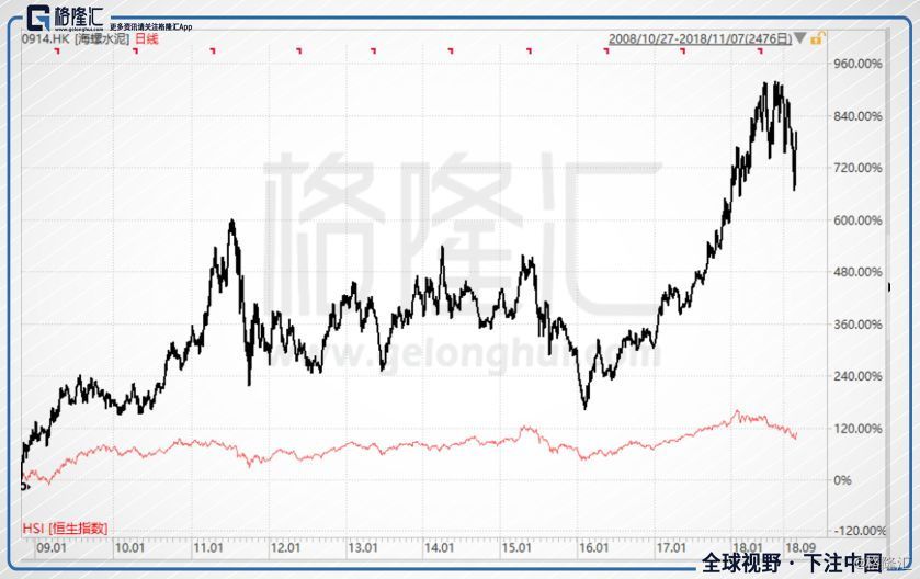 但是,很難有人想象,一只股票在估值的大方向向下的背景下,居然也實現了10倍的漲幅,這只股票是海螺水泥。