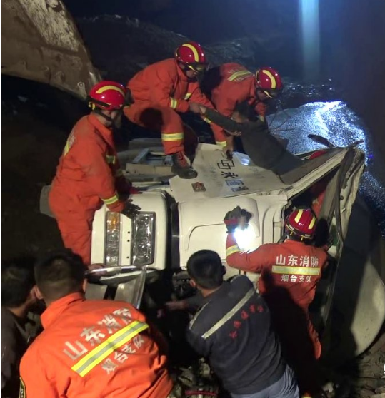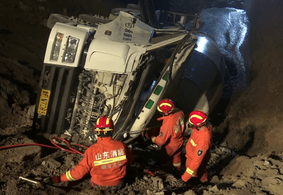 11月13日晚18時44分,蓬萊消防大隊接警中心接到群眾報警稱:位于黨校對面的在建工地1輛水泥罐車不慎翻入3米深溝,駕駛員被困車內(nèi),大隊立即調(diào)派南關路中隊趕赴現(xiàn)場救援。