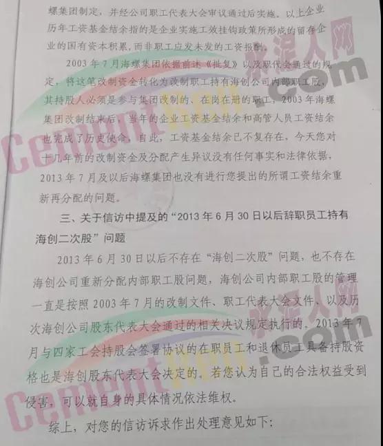 經(jīng)過海螺集團(tuán)調(diào)查,對(duì)信訪者提出的要求作出如下處理意見: