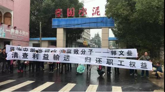 據(jù)水泥人網(wǎng)了解,在2018年10月25日海螺集團(tuán)寧國水泥廠40周年慶典上,維權(quán)人員曾在寧國水泥廠門口拉起了橫幅:要求清查利益輸送,歸還職工權(quán)益。