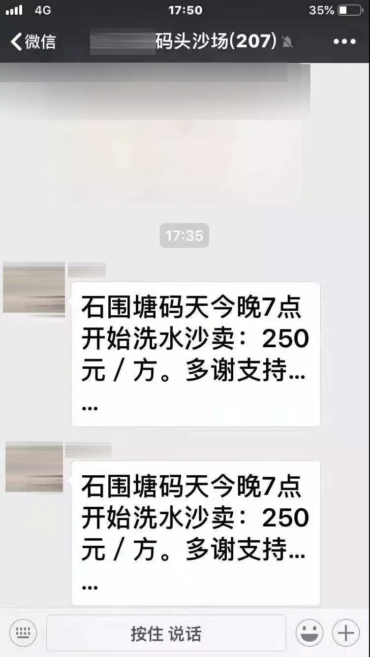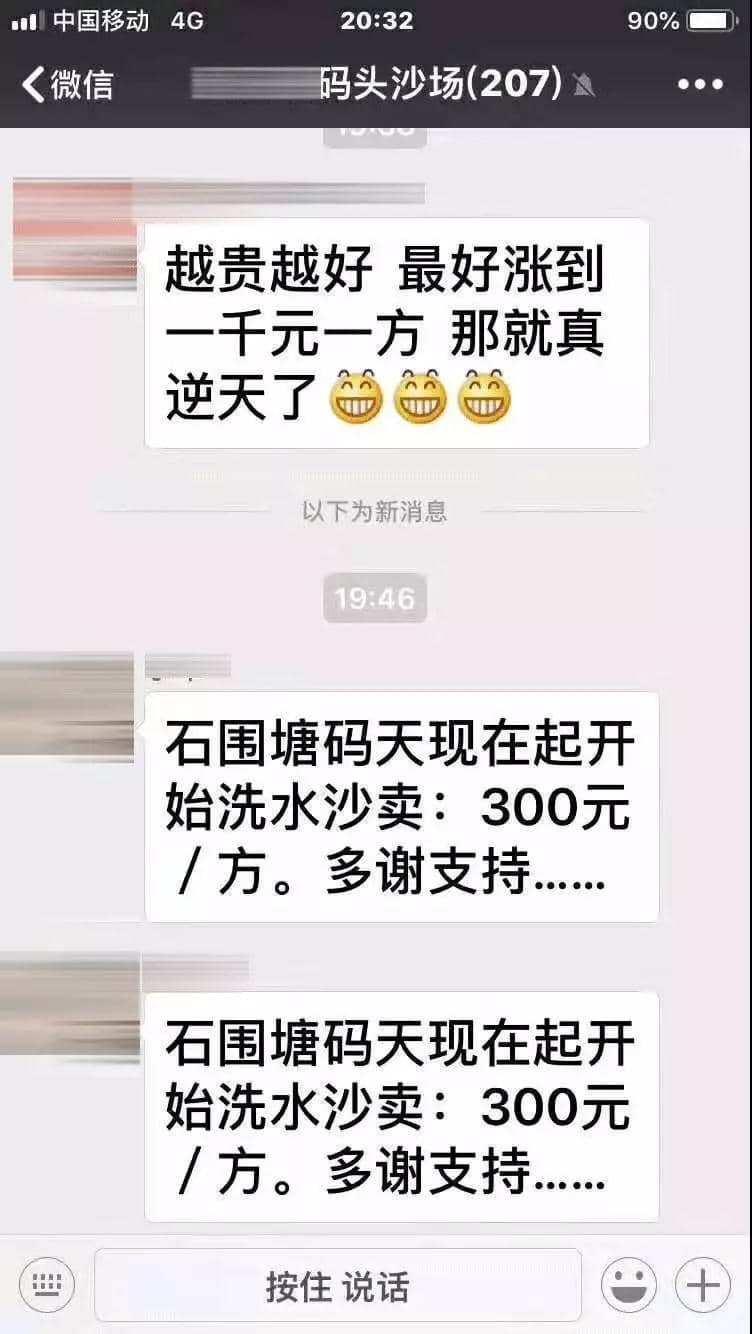 昨日(27日)下午17點(diǎn)35某碼頭沙廠通知晚七點(diǎn)上調(diào)水洗沙價(jià)格250元/方,晚19點(diǎn)46分又再次通知水洗沙價(jià)格執(zhí)行300元/噸。