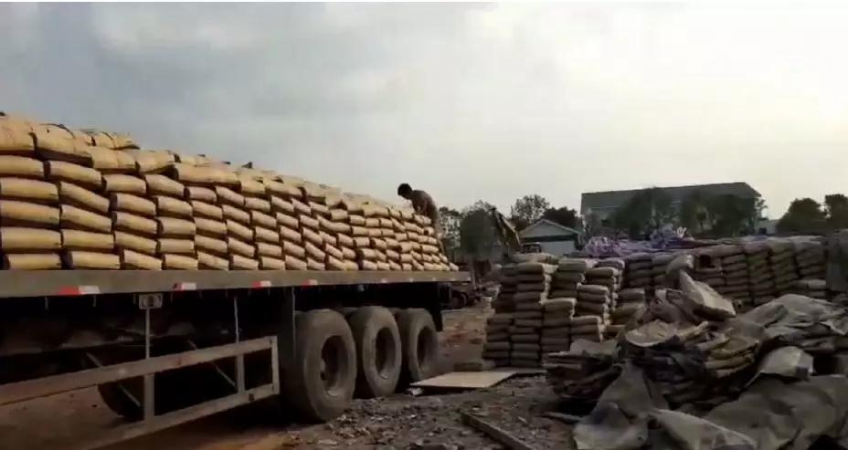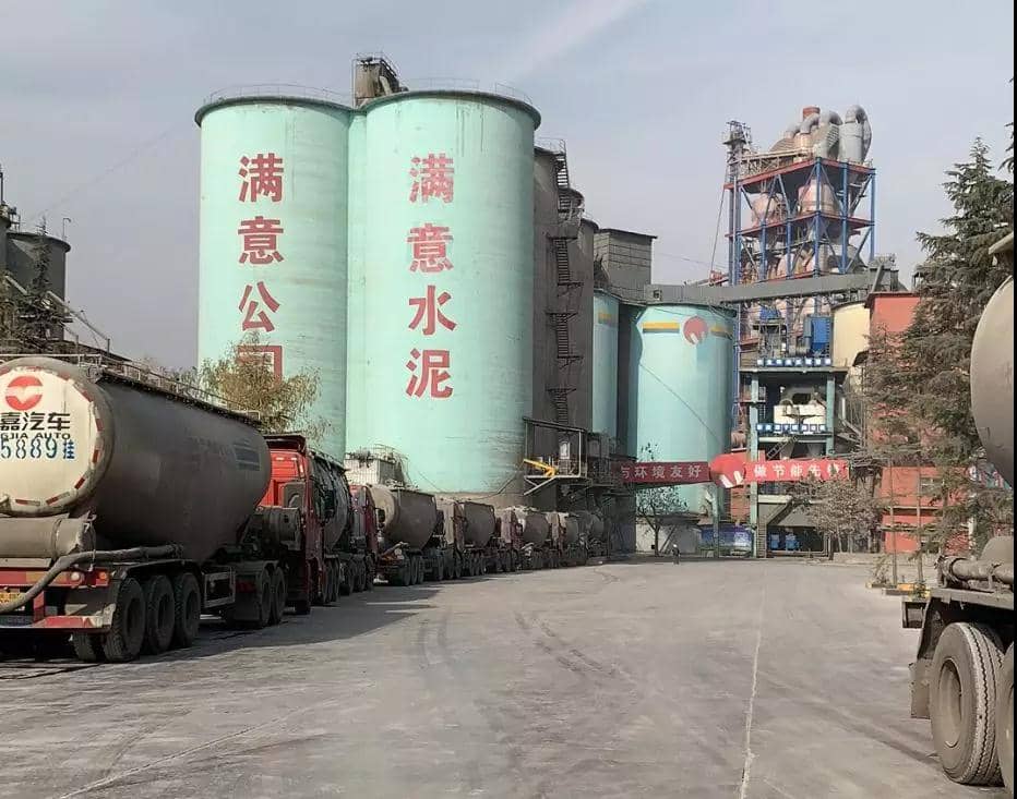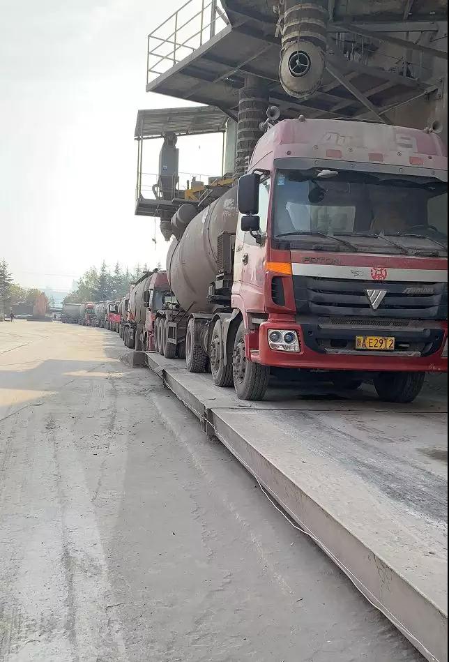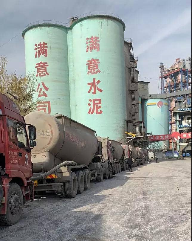門前排隊(duì)車輛有條不紊進(jìn)入工廠灌裝水泥