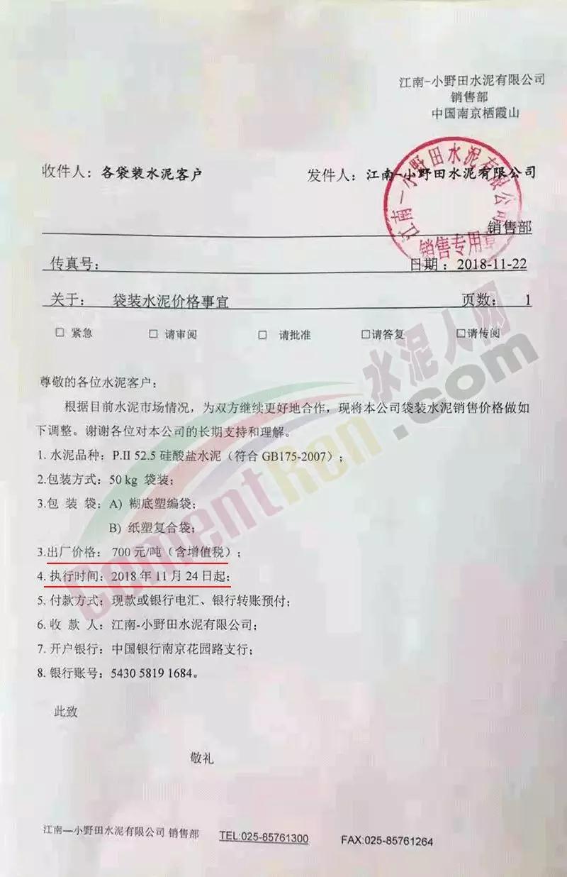 隨著各區(qū)域的價(jià)格上調(diào),目前各地水泥價(jià)格達(dá)到了一個(gè)新的高度。大連小野田P.II52.5水泥逼近900元/噸。江南-小野田通知函,一次性大漲50元,價(jià)格高達(dá)700元/噸。