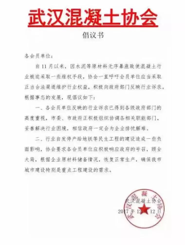 同期湖北武漢混凝土協(xié)會(huì)發(fā)出倡議書(shū)稱,因水泥等原材料無(wú)序暴漲致使混凝土行業(yè)采取一些維權(quán)手段,武漢混凝土協(xié)會(huì)一直呼吁會(huì)員單位應(yīng)當(dāng)采取正當(dāng)合法渠道維護(hù)行業(yè)權(quán)益,積極向政府部門(mén)反映行業(yè)訴求。