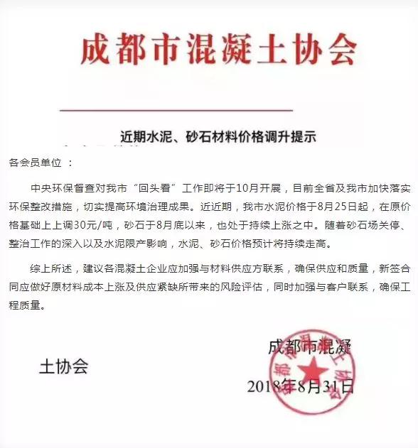 據(jù)水泥人網(wǎng)了解,在經(jīng)歷了前面兩個(gè)階段后,水泥價(jià)格繼續(xù)高歌猛進(jìn),根本沒(méi)有停下來(lái)的意思,各區(qū)域混凝土協(xié)會(huì)終于坐不住了,紛紛發(fā)布漲價(jià)函。