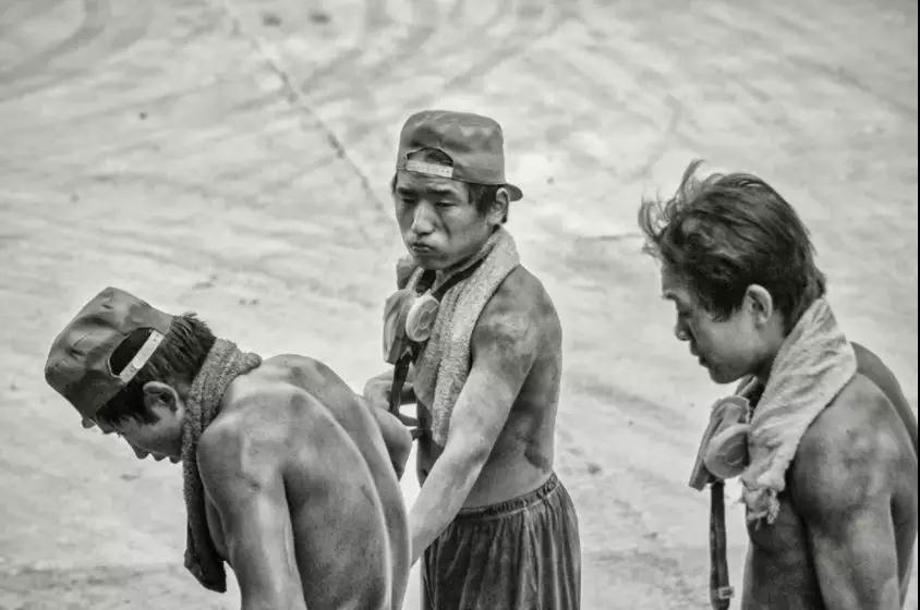 ▲2005年8月,從一個(gè)個(gè)裸身上的粉塵和口鼻上的防護(hù)罩,你就會想象到勞動(dòng)強(qiáng)度和環(huán)境對他們的侵蝕。