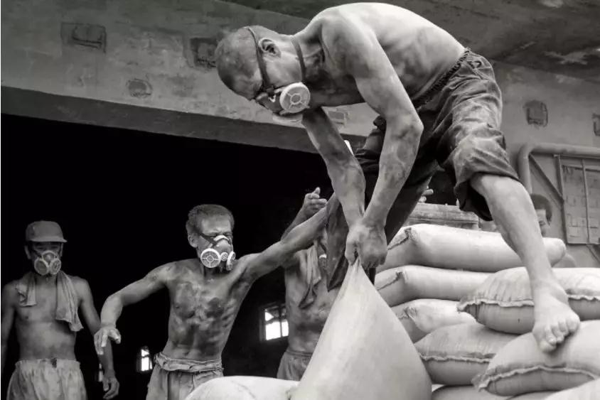 ▲1993年6月,多年去現(xiàn)場拍攝,我和裝車工們也熟識了。有次在勞動(dòng)間隙和他們閑聊之后,我拍下了這幅唯一擺拍的珍貴影像,他們是令我從心底感動(dòng)和敬佩的水泥漢子!也是我攝影生涯中最親近的勞動(dòng)者!
