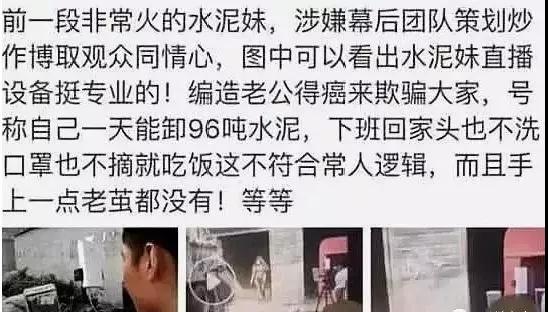 直播相信大家每個(gè)人都看過(guò),也有很多的網(wǎng)紅都是靠著直播平臺(tái)來(lái)賺錢的。同時(shí)直播平臺(tái)也火了一大批人,我們今天說(shuō)的就是這樣一個(gè)團(tuán)隊(duì),靠著直播賣慘來(lái)博取觀眾的眼球,從而攫取流量來(lái)獲得利益。相信大家都知道水泥妹這個(gè)人,他們這個(gè)團(tuán)隊(duì)就是靠拍攝一個(gè)瘦弱的女子在工地上抬水泥來(lái)養(yǎng)活家庭,從而博取關(guān)注。