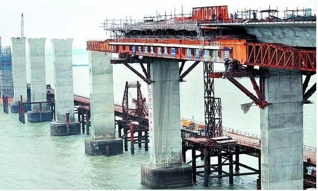 這座大橋最難的部分,也是也是部分深海的施工,所以在建造的時候,為了保證底部的質(zhì)量,我們將240噸的水泥傾瀉到海水當中,為了保證最大的加固,我們在海底打入了上百根鋼柱,這些鋼柱加起來也有三十噸。