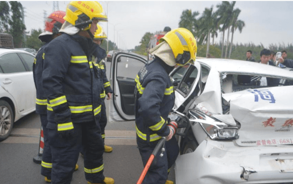 12月9日15時20分,海口市消防支隊119指揮中心接到群眾報警:位于??谑邪遵x大道文昌往??诜较虬l(fā)生一起交通事故,有人員被困,請求救助。接到報警后,指揮中心立即調(diào)派瓊山消防大隊國興中隊2輛消防車11名消防員趕往現(xiàn)場。