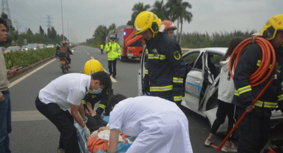 15時30分,消防員到達現(xiàn)場。此時發(fā)生事故的水泥車正靠邊停著,水泥車前面的一輛教練車,車尾碰撞痕跡明顯,車身變形。經(jīng)了解,兩車是發(fā)生了追尾造成碰撞,教練車車廂后排位置有1名女子受重傷被困,無法動彈,120醫(yī)護人員也已經(jīng)先給受傷女子進行輸液,而教練車上其余4人也受了輕傷,已自行下車等待救助。了解現(xiàn)場情況后,消防員迅速展開救援工作,利用液壓破拆工具組將車門打開,約10分鐘后,消防員將受重傷女子成功救出,并交由120醫(yī)護人員送往醫(yī)院進一步救治。