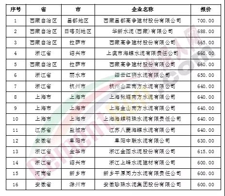 備注:上述報(bào)價(jià)數(shù)據(jù)為水泥人網(wǎng)信息中心人工采集,如與實(shí)際成交價(jià)格不符,請以實(shí)際成交為準(zhǔn)。更多企業(yè)報(bào)價(jià)數(shù)據(jù)請聯(lián)系我們。