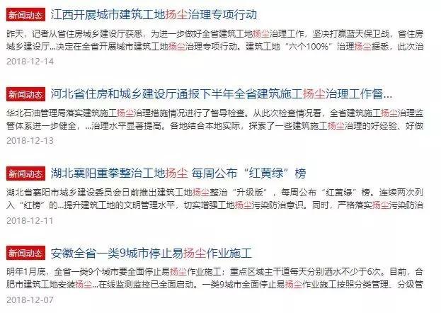 除了承接上游傳導(dǎo)而來的環(huán)保轉(zhuǎn)型壓力外,下游建筑企業(yè)還不得不同時經(jīng)受環(huán)保風(fēng)暴中的揚(yáng)塵整治壓力:每到秋冬季節(jié),建筑工地?fù)P塵治理工作都是各地的監(jiān)管重點(diǎn)。在生態(tài)環(huán)保部明確指出禁止“一刀切”做法的同時,各地為確保揚(yáng)塵治理達(dá)標(biāo)也“各出奇招”,如被列入湖北襄陽揚(yáng)塵整治“紅”榜的企業(yè)將在招投標(biāo)活動中受到限制。