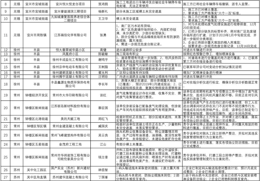 根據(jù)《關(guān)于開展秋冬季期間環(huán)境執(zhí)法發(fā)現(xiàn)問題公開發(fā)布工作的通知》(蘇環(huán)辦〔2018〕461號)要求,現(xiàn)將12月份第二周我省秋冬季大氣污染防治交叉互查情況通報如下: