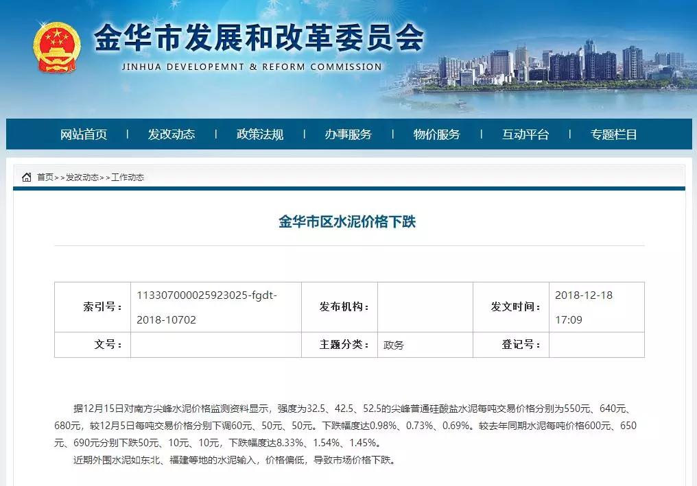 同期浙江金華的水泥價(jià)格也出現(xiàn)了下跌。