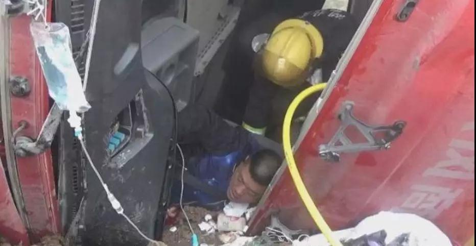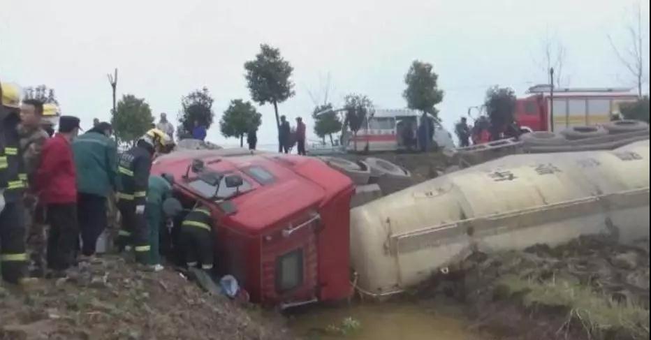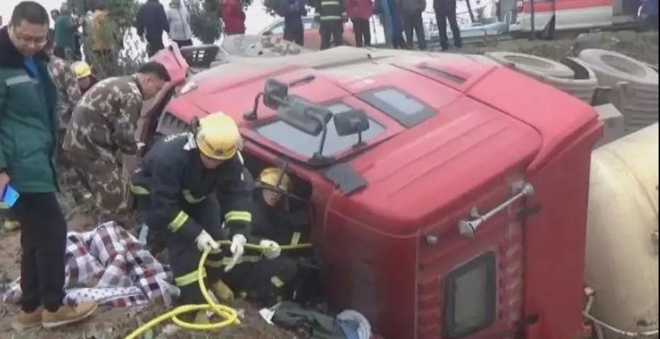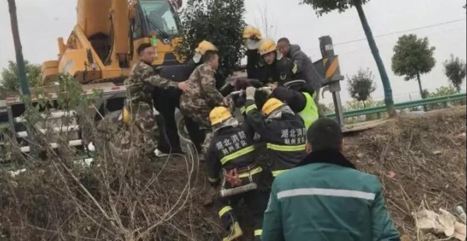 2018年12月20日13時許,湖北荊州洪湖市烏林鎮(zhèn)的鄉(xiāng)村公路上發(fā)生一起交通事故,一輛滿載40噸水泥的槽罐車側(cè)翻在路邊的溝內(nèi),車內(nèi)一名中年司機被變形的駕駛室壓住無法動彈,經(jīng)當(dāng)?shù)叵?、交警、醫(yī)療、和群眾的共同努力將被困司機救出并送往醫(yī)院救治。