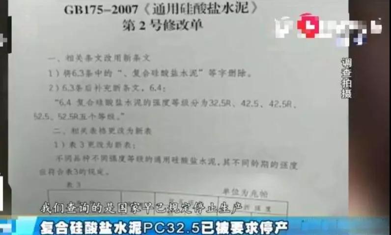 經銷商將生產水泥的廠家地址告訴了董大哥,董大哥隨即趕到水泥廠一問究竟。面對記者的采訪,水泥廠的工作人員堅稱自己買的水泥屬于合格產品并向記者展示了存放在倉庫的產品,見到水泥后記者發(fā)現(xiàn)這里的水泥型號和董大哥家的基本一致,但是有一個細節(jié)讓記者發(fā)現(xiàn)了問題,就是產品的型號變成了“PC32.5R”,記者再一查詢得知,這一型號的水泥與董大哥家里的“PC32.5”并不一樣,董大哥家的早在2015年就已經停產,而現(xiàn)在的這個型號要到2019年12月份才會到期停產。因此,一番查詢下來董大哥家的房屋會出現(xiàn)問題,原因還在水泥上。