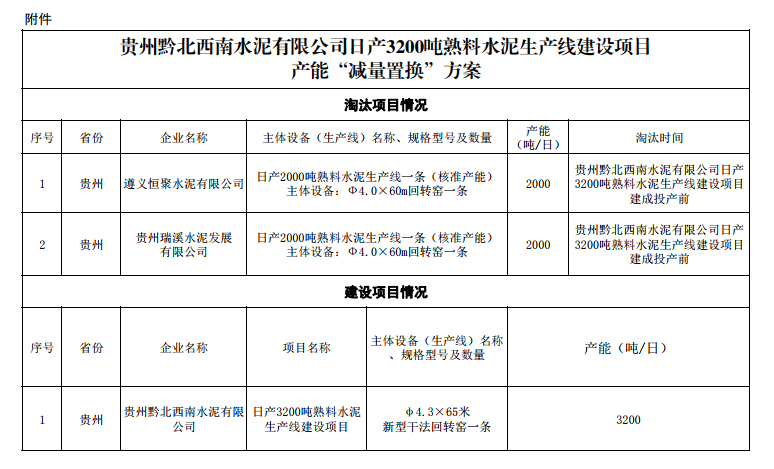 按照工業(yè)和信息化部《水泥玻璃行業(yè)產能置換實施辦法》和原貴州省經濟和信息化委員會《關于做好鋼鐵、水泥、玻璃和電解鋁行業(yè)產能置換工作的通知》(黔經信原材料〔2018〕9號)要求,現(xiàn)將貴州黔北西南水泥有限公司日產3200噸熟料水泥生產線建設項目產能“減量置換”方案予以公示,歡迎社會公眾監(jiān)督。
