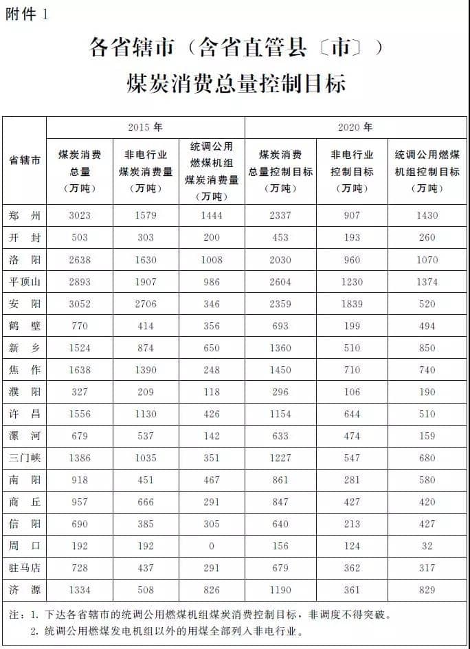 1.各省轄市(含省直管縣〔市〕)煤炭消費(fèi)總量控制目標(biāo)