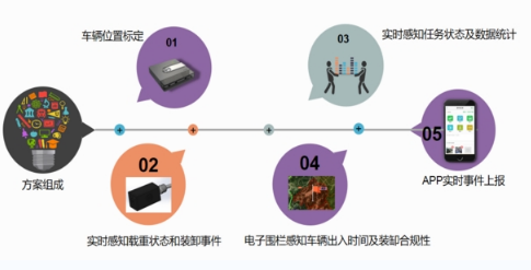 首先,智能熱點(diǎn)標(biāo)定可以實(shí)時(shí)感知車輛所處位置;其次,載重自動(dòng)感知可以精確識(shí)別水泥的裝卸貨事件,對(duì)貨物在哪里裝卸全程監(jiān)控;最后,運(yùn)輸任務(wù)可視化解決了貨物流向的目標(biāo)監(jiān)控,建立一站式的信息化管理。