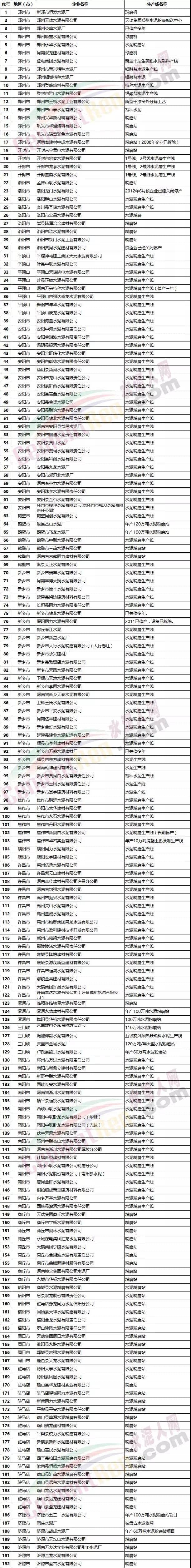 河南省部分日產(chǎn)2000噸及日產(chǎn)2000噸以下