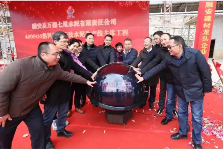 12月28日,融安縣萬德七星水泥有限責任公司舉行4000t/d熟料新型干法水泥生產(chǎn)線主體工程竣工儀式現(xiàn)場。
