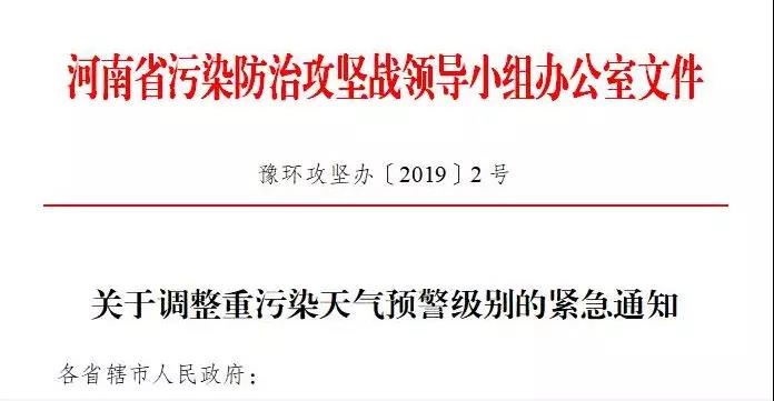 為加強聯(lián)防聯(lián)控,減輕區(qū)域重度污染程度及縮短持續(xù)時間,保護人民群眾身體健康,省污染防治攻堅辦研究決定:請鄭州、開封、平頂山、安陽、濮陽、許昌、漯河、三門峽、周口、駐馬店、南陽、濟源12市于1月4日18時升級為重污染天氣紅色預警及Ⅰ級響應,其他6市繼續(xù)實行重污染天氣橙色預警及Ⅱ級響應。