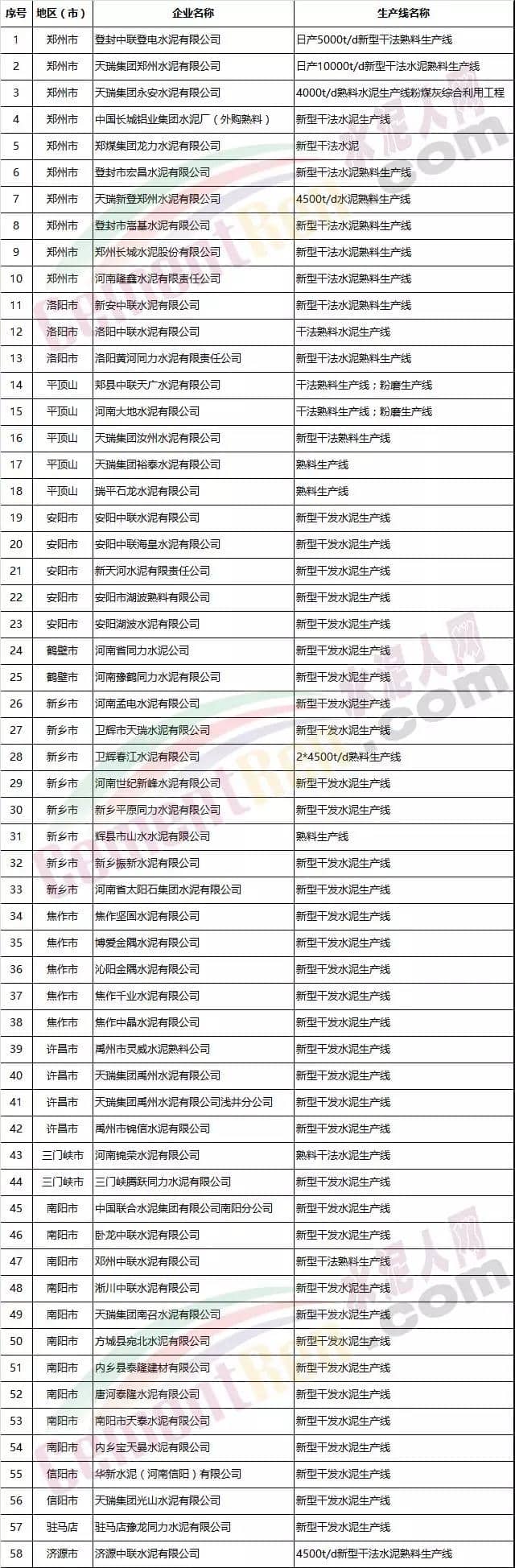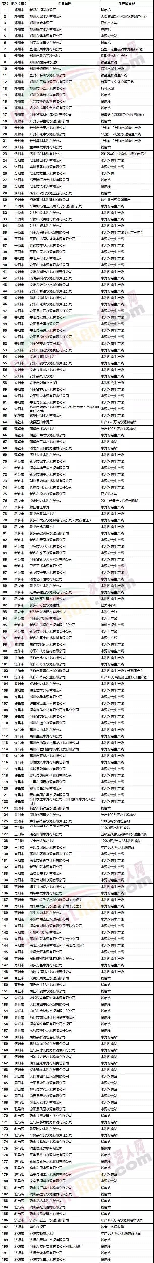 河南省部分熟料生產(chǎn)企業(yè)名單
