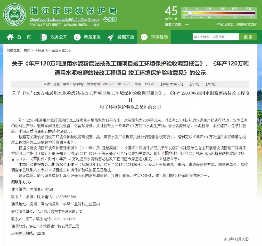 據(jù)查詢,吳川市粵西水泥廠于1990年03月05日在吳川市工商行政管理局注冊成立。此前,湛江市環(huán)境保護局官網(wǎng)曾發(fā)布關(guān)于《年產(chǎn)120萬噸通用水泥粉磨站技改工程項目竣工環(huán)境保護驗收調(diào)查報告》、《年產(chǎn)120萬噸通用水泥粉磨站技改工程項目 竣工環(huán)境保護驗收意見》的公示文件。