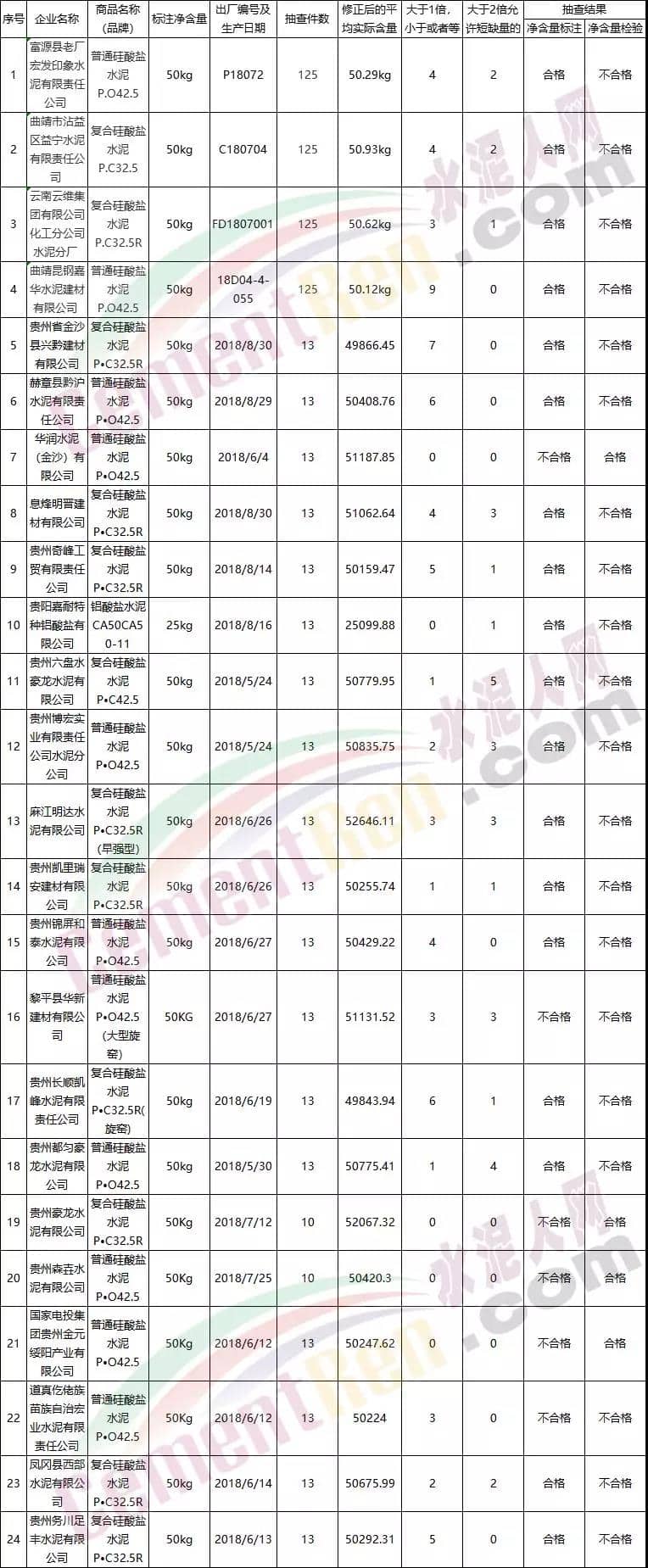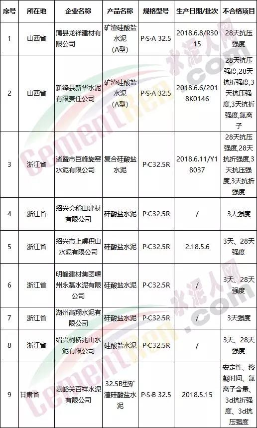 2018年水泥強(qiáng)度不合格企業(yè)名單