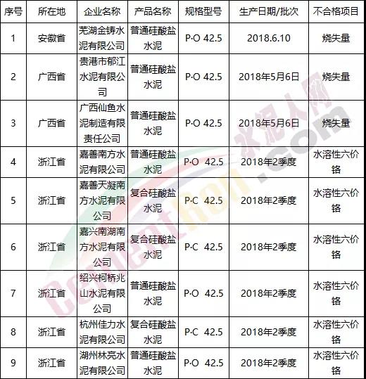 2018年水泥氯離子不合格企業(yè)名單