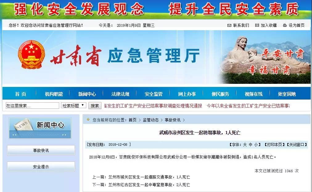 甘肅省安監(jiān)局消息:12月18日甘肅隴俊環(huán)??萍加邢薰疚渫止疽环勖夯覀}儲罐體發(fā)生破裂倒塌,造成工作人員被埋,事故導(dǎo)致1人死亡。