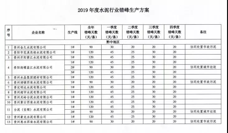 錯峰生產(chǎn)時(shí)間安排:當(dāng)年冬春季和高溫、雨季、電煤保供、環(huán)境應(yīng)急時(shí)段為錯峰生產(chǎn)重要時(shí)段,其他月份為錯峰生產(chǎn)調(diào)節(jié)時(shí)段,結(jié)合貴州省扶貧工程、“組組通”鄉(xiāng)村公路工程需求變化情況,合理安排錯峰生產(chǎn)時(shí)間。