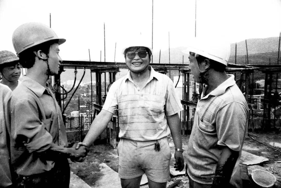 1993年8月8日,華新4號(hào)生料均化庫(kù)滑模完畢,李葉青向現(xiàn)場(chǎng)工程人員表示祝賀